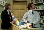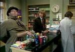 (Aptekarz odwraca się i szuka towaru. Do sklepu wchodzi gruby jegomość płaszczu z rękoma założonymi do tyłu. Kiedy podchodzi do lady, z płaszcza wysuwa się dodatkowa para rąk, chwyta jakieś pudełko i chowa pośpiesznie do kieszeni. Klient zauważa kradzież i stuka w ramię aptekarza, który bierze do ust gwizdek i używa go. W aptece pojawia się umundurowany policjant.)