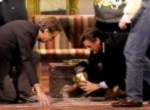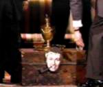 Lokaj wszedł na scenę ze złotą urną i ustawił ją na stole [właściwie to nie był stół tylko kufer, który pełnił rolę stolika - przyp. tłumacza]. Wraz z prochami Chapmana, Pythonów była już cała szóstka.