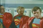 (cięcie; pompuje koło; nadchodzą inni supermani cięcie)